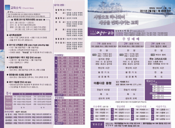 2011년 2월 6일 주보 페이지 정보 작성자 yabc 작성일11-02-01 00:00 조회10,992회 댓글0건 관련링크 목록 본문 2011년 2월 6일 주보 댓글목록 등록된 댓글이 없습니다. 목록