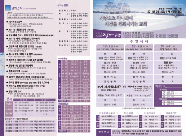 2011년 2월 20일 주보 페이지 정보 작성자 yabc 작성일11-02-19 00:00 조회10,886회 댓글0건 관련링크 목록 본문 2011년 2월 20일 주보 댓글목록 등록된 댓글이 없습니다. 목록