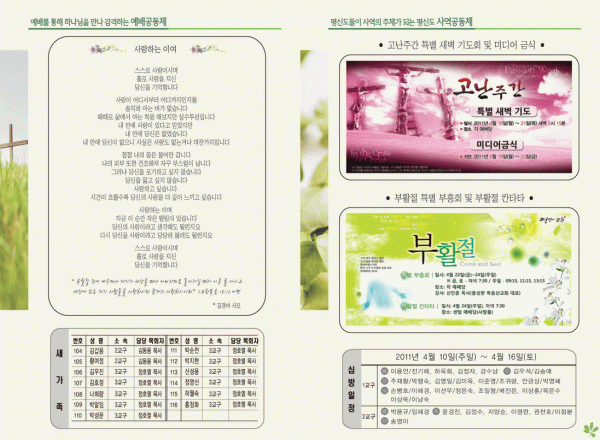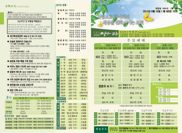 2011년 4월 10일 주보 페이지 정보 작성자 yabc 작성일11-04-09 00:00 조회10,716회 댓글0건 관련링크 목록 본문 2011년 4월 10일 주보 댓글목록 등록된 댓글이 없습니다. 목록