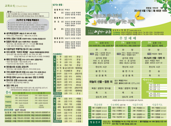 2011년 4월 17일 주보 페이지 정보 작성자 yabc 작성일11-04-16 00:00 조회10,778회 댓글0건 관련링크 목록 본문 2011년 4월 17일 주보 댓글목록 등록된 댓글이 없습니다. 목록