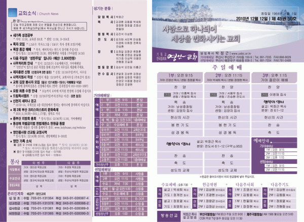 2010년 12월 12일 주보 페이지 정보 작성자 yabc 작성일10-12-11 00:00 조회10,832회 댓글0건 관련링크 목록 본문 2010년 12월 12일 주보 댓글목록 등록된 댓글이 없습니다. 목록