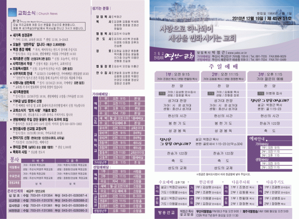 2010년 12월 19일 주보 페이지 정보 작성자 yabc 작성일10-12-18 00:00 조회10,610회 댓글0건 관련링크 목록 본문 2010년 12월 19일 주보 댓글목록 등록된 댓글이 없습니다. 목록