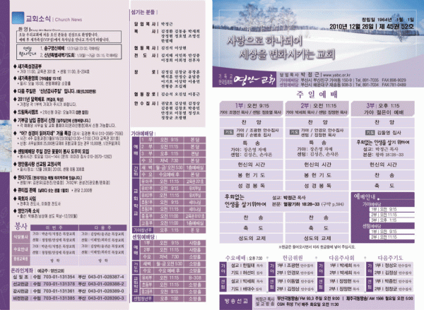 2010년 12월 26일 주보 페이지 정보 작성자 yabc 작성일10-12-24 00:00 조회11,082회 댓글0건 관련링크 목록 본문 2010년 12월 26일 주보 댓글목록 등록된 댓글이 없습니다. 목록