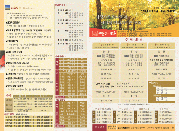 2010년 10월 3일 주보 페이지 정보 작성자 yabc 작성일10-10-02 00:00 조회10,902회 댓글0건 관련링크 목록 본문 2010년 10월 3일 주보 댓글목록 등록된 댓글이 없습니다. 목록