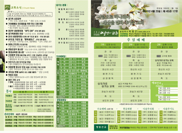 2010년 4월 25일 주보 페이지 정보 작성자 yabc 작성일10-04-24 00:00 조회11,213회 댓글0건 관련링크 목록 본문 2010년 4월 25일 주보 댓글목록 등록된 댓글이 없습니다. 목록