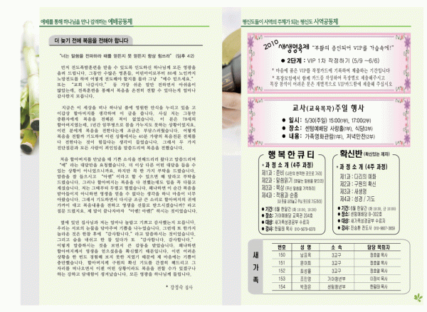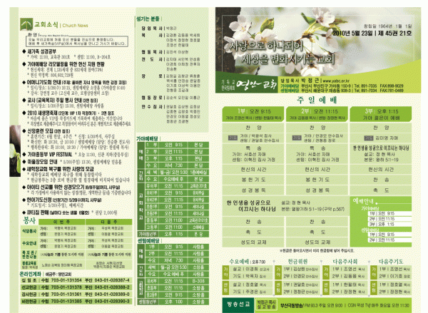 2010년 5월 23일 주보 페이지 정보 작성자 yabc 작성일10-05-22 00:00 조회11,140회 댓글0건 관련링크 목록 본문 2010년 5월 23일 주보 댓글목록 등록된 댓글이 없습니다. 목록