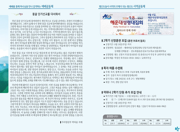 2024년 8월 11일 주보 (센텀예배당) 페이지 정보 작성자 관리지기 작성일24-08-10 10:52 조회2,297회 댓글0건 관련링크 목록 본문 2024년 8월 11일 주보 (센텀예배당) 댓글목록 등록된 댓글이 없습니다. 목록