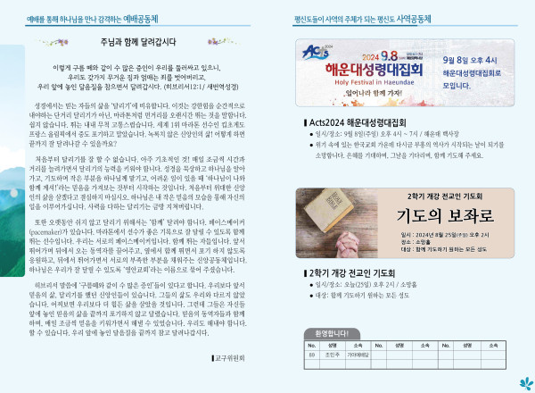 2024년 8월 25일 주보 (센텀예배당) 페이지 정보 작성자 관리지기 작성일24-08-24 10:51 조회2,221회 댓글0건 관련링크 목록 본문 2024년 8월 25일 주보 (센텀예배당) 댓글목록 등록된 댓글이 없습니다. 목록