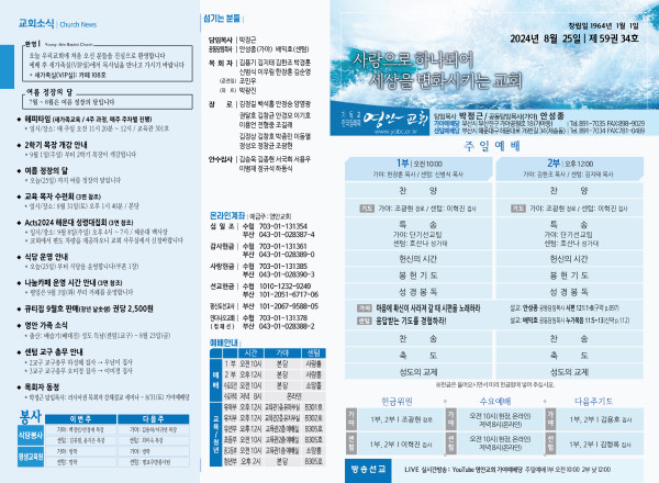 2024년 8월 25일 주보 (가야예배당) 페이지 정보 작성자 관리지기 작성일24-08-24 11:19 조회2,390회 댓글0건 관련링크 목록 본문 2024년 8월 25일 주보 (가야예배당) 댓글목록 등록된 댓글이 없습니다. 목록