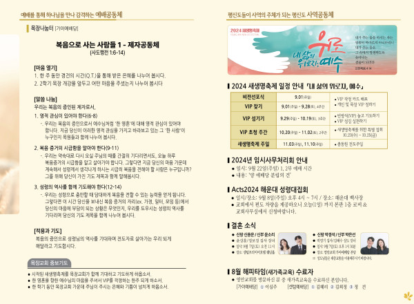 2024년 9월 1일 주보 (가야예배당) 페이지 정보 작성자 관리지기 작성일24-08-31 13:49 조회2,429회 댓글0건 관련링크 목록 본문 2024년 9월 1일 주보 (가야예배당) 댓글목록 등록된 댓글이 없습니다. 목록