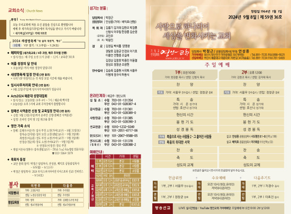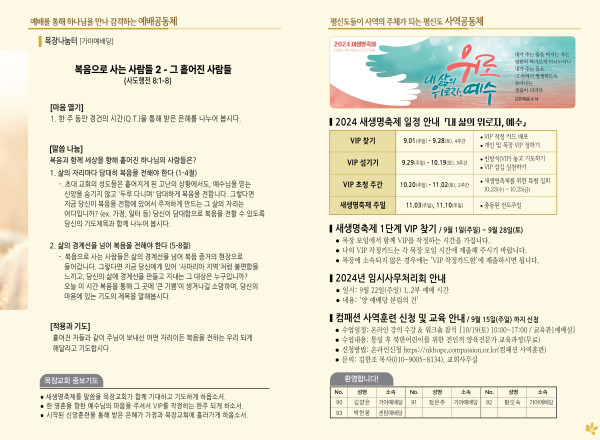 2024년 9월 8일 주보 (가야예배당) 페이지 정보 작성자 관리지기 작성일24-09-07 11:22 조회2,357회 댓글0건 관련링크 목록 본문 2024년 9월 8일 주보 (가야예배당) 댓글목록 등록된 댓글이 없습니다. 목록