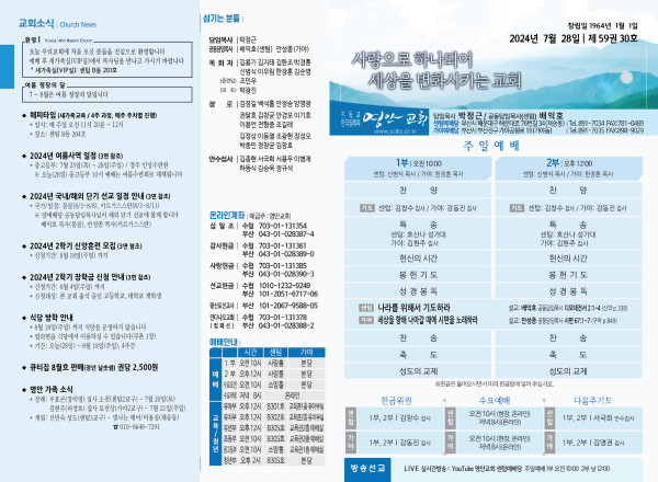 2024년 7월 28일 주보 (센텀예배당) 페이지 정보 작성자 관리지기 작성일24-07-27 10:32 조회2,310회 댓글0건 관련링크 목록 본문 2024년 7월 28일 주보 (센텀예배당) 댓글목록 등록된 댓글이 없습니다. 목록