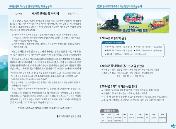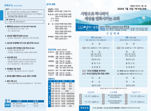 2024년 7월 21일 주보 (센텀예배당) 페이지 정보 작성자 관리지기 작성일24-07-20 10:46 조회2,310회 댓글0건 관련링크 목록 본문 2024년 7월 21일 주보 (센텀예배당) 댓글목록 등록된 댓글이 없습니다. 목록