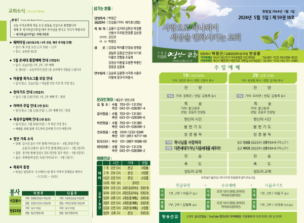 2024년 5월 5일 주보 (가야예배당) 페이지 정보 작성자 관리지기 작성일24-05-04 11:35 조회2,851회 댓글0건 관련링크 목록 본문 2024년 5월 5일 주보 (가야예배당) 댓글목록 등록된 댓글이 없습니다. 목록