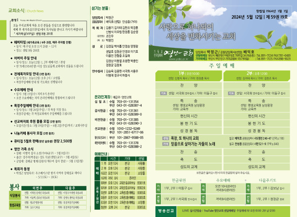 2024년 5월 12일 주보 (센텀예배당) 페이지 정보 작성자 관리지기 작성일24-05-11 10:50 조회2,569회 댓글0건 관련링크 목록 본문 2024년 5월 12일 주보 (센텀예배당) 댓글목록 등록된 댓글이 없습니다. 목록