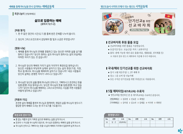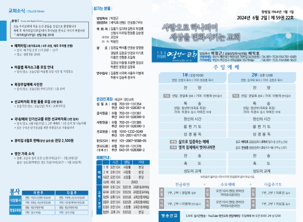 2024년 6월 2일 주보 (센텀예배당) 페이지 정보 작성자 관리지기 작성일24-06-01 10:40 조회2,592회 댓글0건 관련링크 목록 본문 2024년 6월 2일 주보 (센텀예배당) 댓글목록 등록된 댓글이 없습니다. 목록