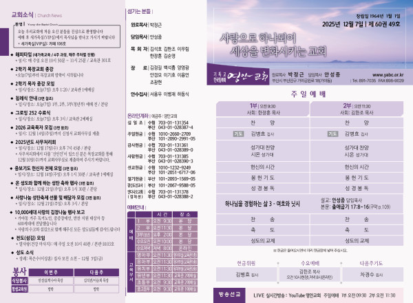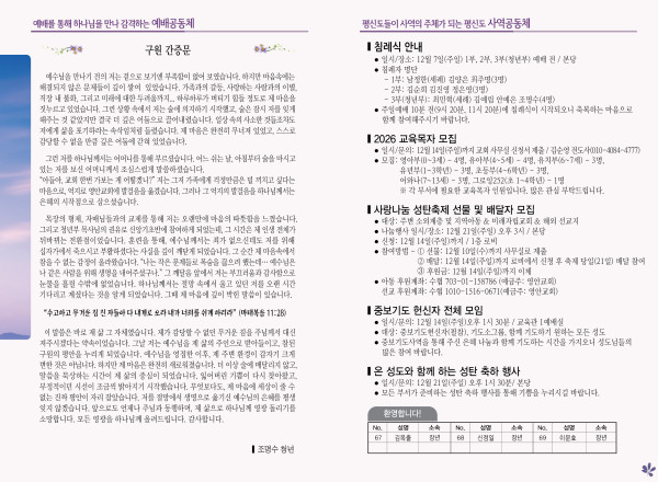 2025년 12월 7일 주보 페이지 정보 작성자 관리지기 작성일25-12-06 10:36 조회991회 댓글0건 관련링크 목록 본문 2025년 12월 7일 주보 댓글목록 등록된 댓글이 없습니다. 목록