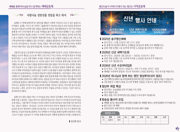 2025년 12월 28일 주보 페이지 정보 작성자 관리지기 작성일25-12-27 10:20 조회1,152회 댓글0건 관련링크 목록 본문 2025년 12월 28일 주보 댓글목록 등록된 댓글이 없습니다. 목록